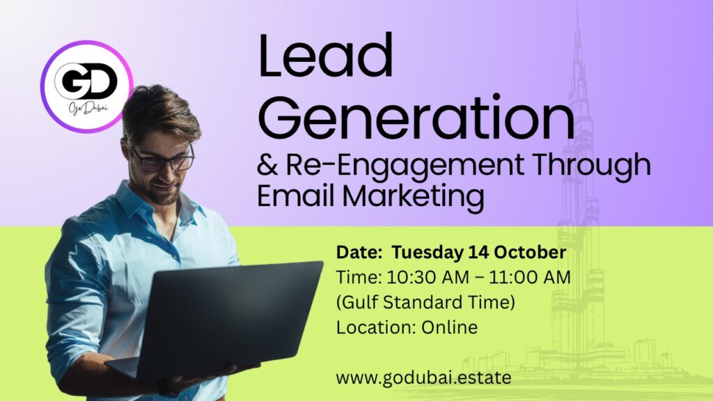 Join our 30-minute online session designed exclusively for Dubai real estate brokers. Discover the latest strategies to generate high-quality leads and revive inactive prospects through smart email marketing campaigns. Learn how to combine automation, personalization, and data insights to boost conversions and close more deals.