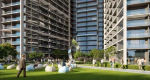 – Resort‑style amenities: outdoor cinema, amphitheater, leisure lounge, climbing wall, yoga studio, landscaped gardens